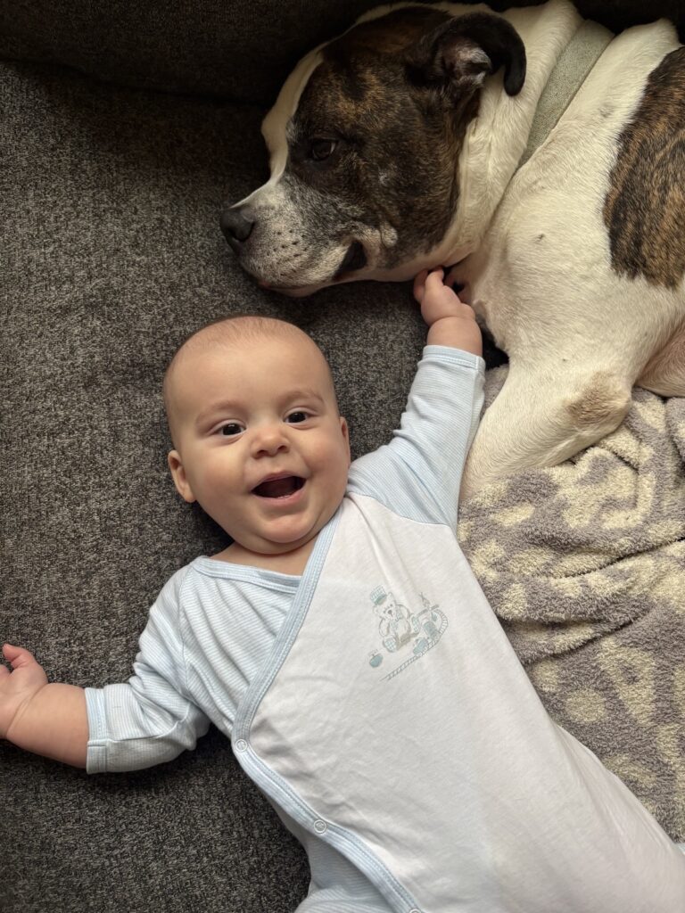 A quick check in: As your child gets older nad more mobile, teach them early how to interact respectfully with the dog. No pulling ears, no disrupting them while they’re eating or sleeping, and no cornering them. A dog that feels safe around a child is a dog that stays calm. And a child who learns to respect animals early, carries that empathy with them for life.