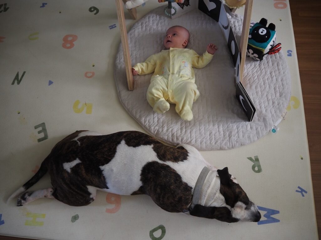 Your dog is going to notice changes whether you prepare them or not, so you might as well make those changes gradually. If your dog is sleeping where the bassinet is going, shift that routine now. If you’re used to long walks twice a day, that might become tricky with a newborn. Start varying the schedule so unpredictability isn’t a shock. We played recordings of babies crying in the weeks before our little one arrived so the noise isn’t completely alien when it arrives at full volume at 2am. It sounds a bit over the top, but dogs are creatures of habit and a little advance warning goes a long way.